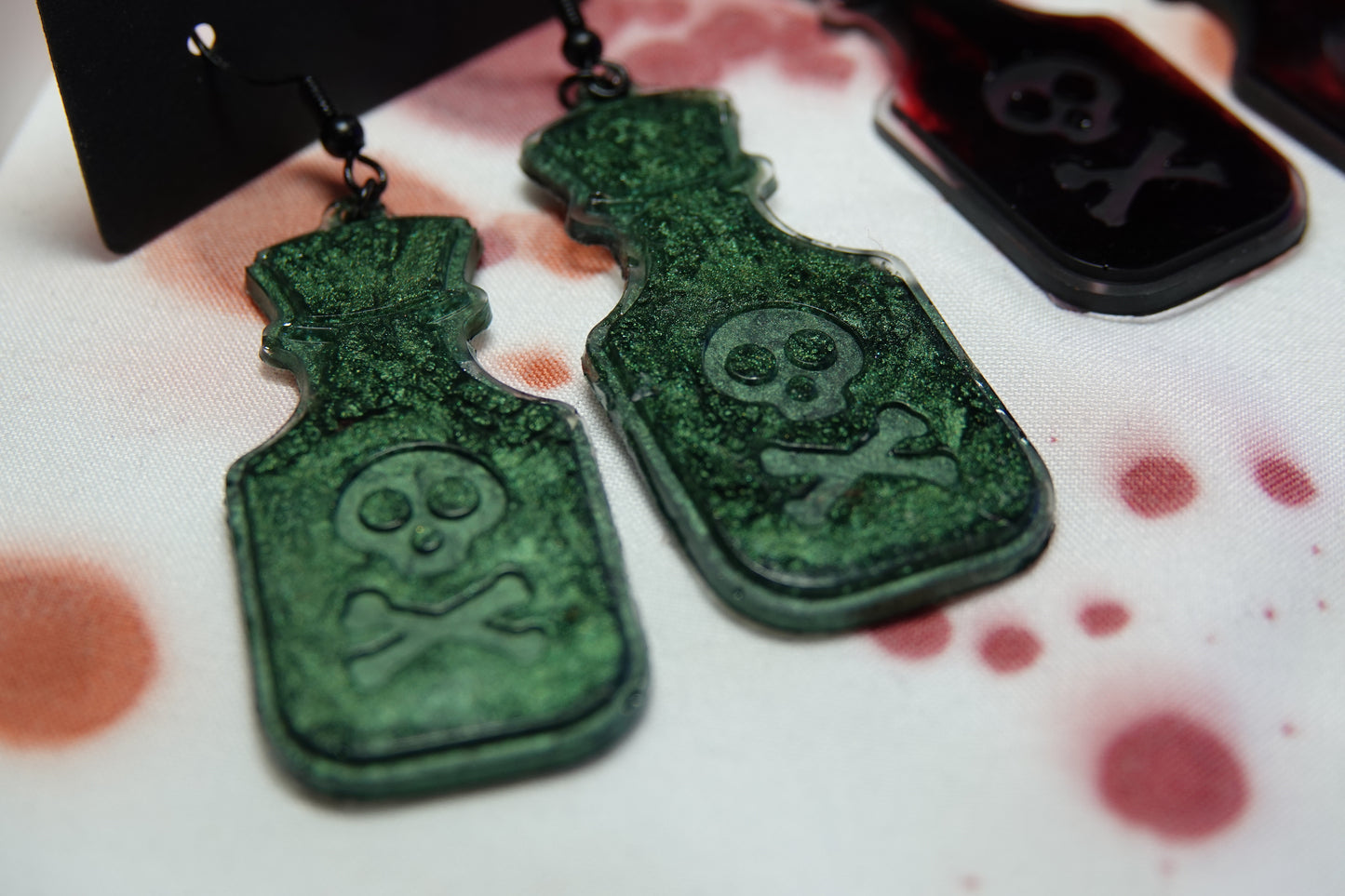 Boucle d’oreilles « Poison » réalisé en résine. Disponible en différent coloris.